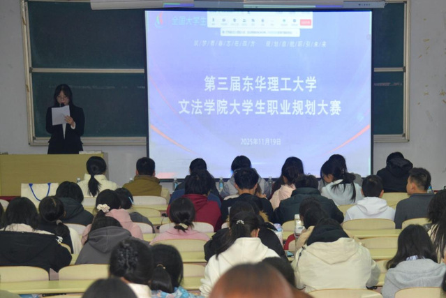 为帮助大学生清晰规划职业路径、明确发展方向,11月19日晚19点,第三届东华理工大学文法学院大学生职业规划大赛在抚州校区阶14教室顺利举办,学院辅导员杨凯芹、肖骁涵等老师担任比赛评委,200余名学生到场观赛。