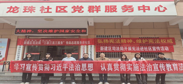 2025年12月2日,学院联合新建区司法局,走进新建区长堎街道龙珠社区党群服务中心,以“学习宣传贯彻习近平法治思想,推动宪法深入人心”为主题,开展“宪法进社区”宣传活动。活动现场,“2025年国家宪法日”主题展板、法治宣传展架整齐排列,宪法宣讲区、法律咨询台有序设置,吸引大批居民参与。双方组建的“普法服务团”中,高校师生志愿者用通俗语言解读宪法核心内容,趣味十足的宪法知识问答环节让现场氛围持续升温。