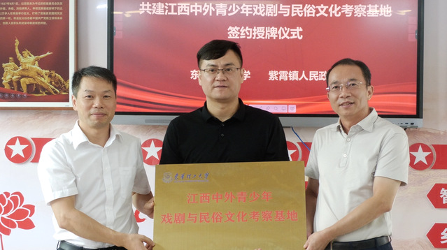 9月24日,东华理工大学与南丰县举行“江西中外青少年戏剧与民俗文化考察基地”签约授牌仪式。校党委常委、副校长杨波,南丰县委常委涂中平分别代表双方单位签署共建协议。
