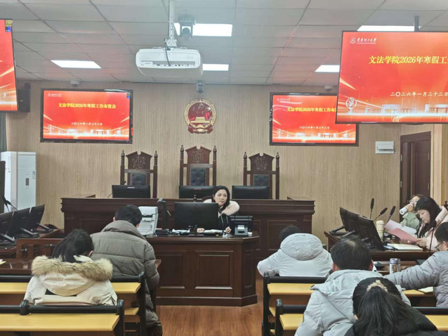 为总结学院2025年度工作成果,明确“十五五”发展规划方向,部署寒假相关工作,1月22日下午,文法学院在枫林文法楼205会议室与抚州行政楼4楼模拟法庭同步召开2025年全体教职工大会,学院全体教职工参加会议,会议由党委副书记李旭、分工会主席陈小松分阶段主持。
