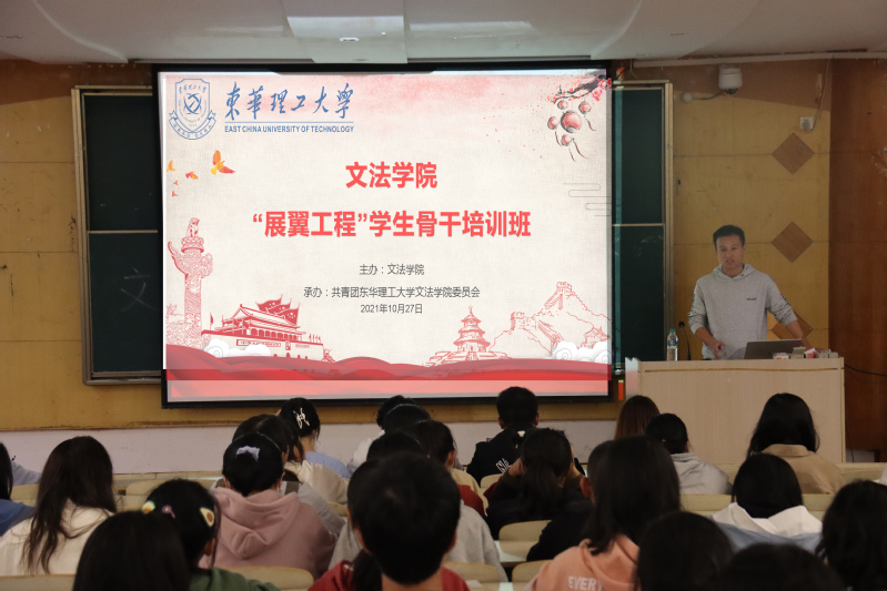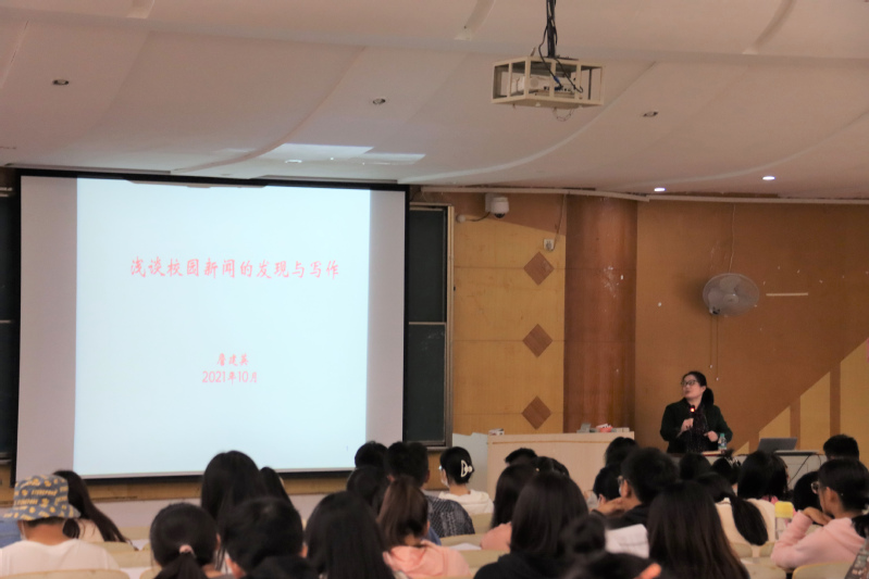 10月27日晚七点,校党委宣传部新闻中心主任詹建英主讲的“浅谈校园新闻的发现与写作”讲座在枫林校区图书馆阶一教室举办,开启了文法学院2021年度学生骨干“展翼计划”培训会的序幕。本次培训会由文法学院团委老师李磊主持,全院学生骨干合计200余人参加了学习。